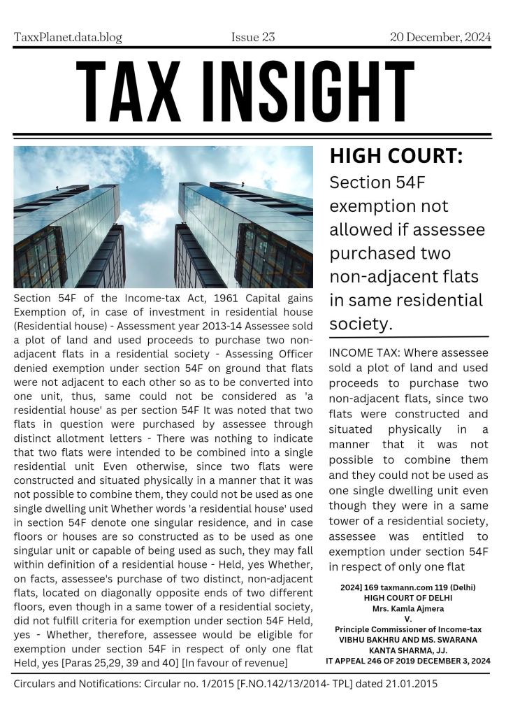 Section 54F exemption not allowed if the assessee purchased two non-adjacent flats in the same residential society: HC