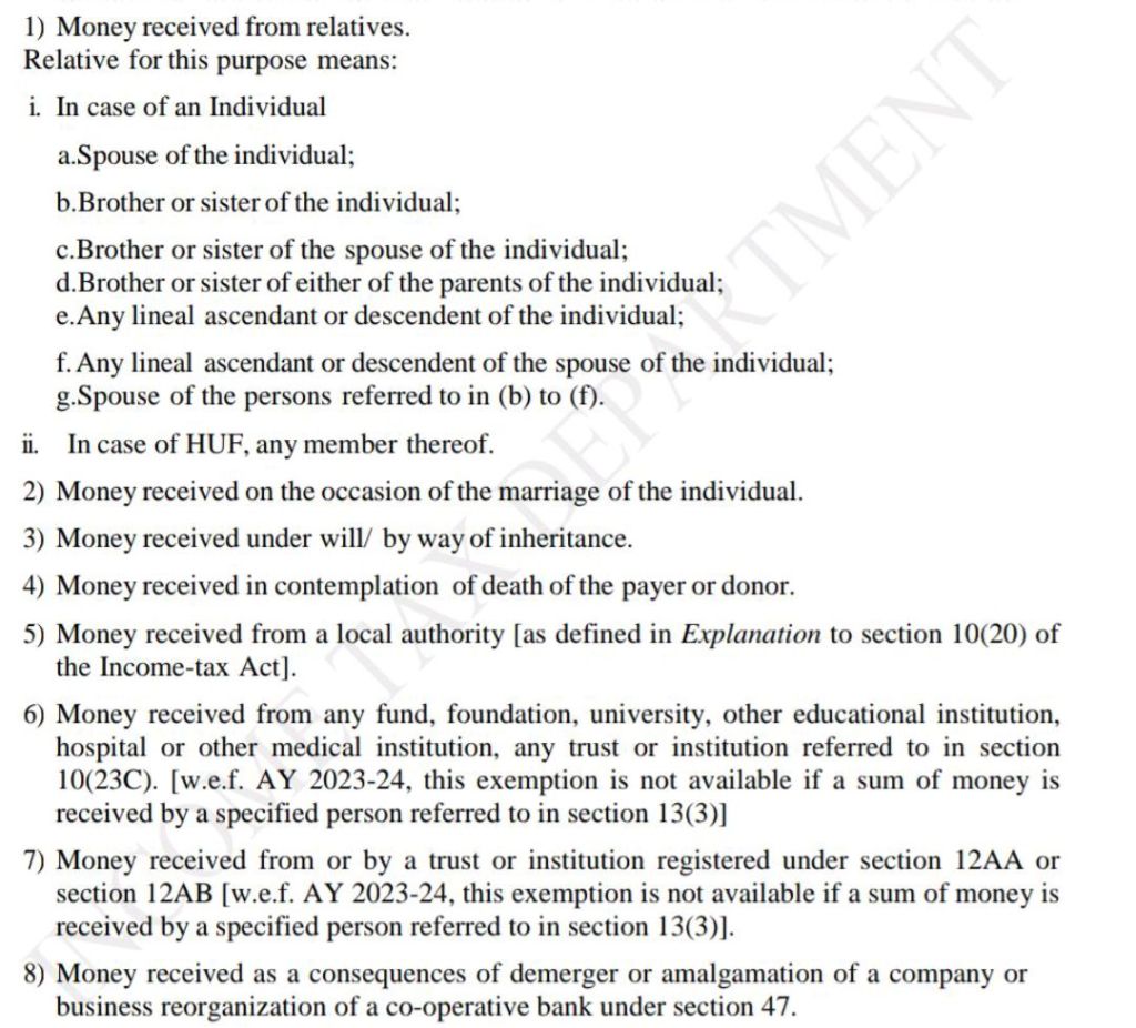 In the following cases, monetary gifts received by an individual or HUF will not be charged to tax.