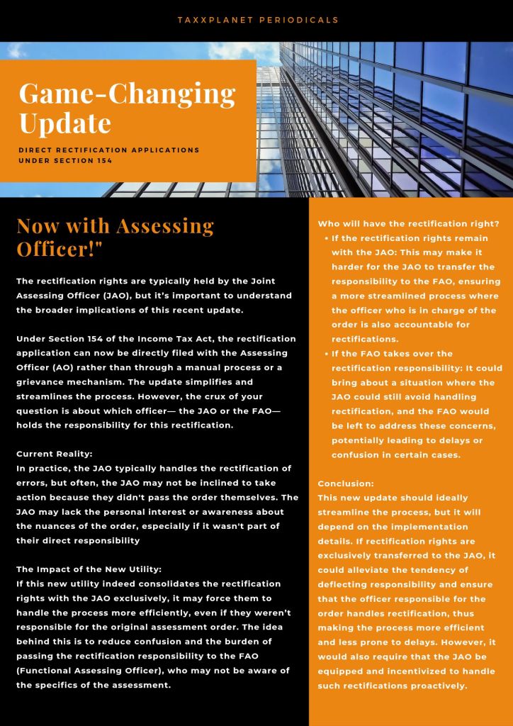 Game-Changing Update: Direct Rectification Applications Under Section 154 Now with Assessing Officer!